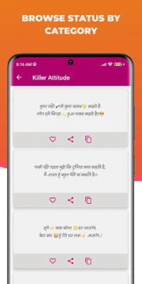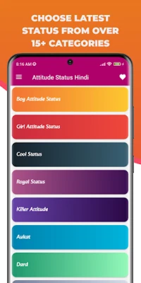 🔥 Diverse Attitude Statuses: Explore a vast collection of attitude statuses in Hindi that cater to various moods and situations. From sassy one-liners to profound thoughts, find the perfect status for every occasion.