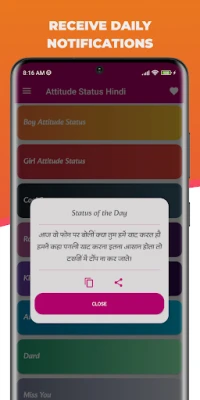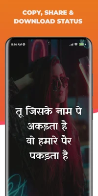 💯 Completely Free: Attitude Status Hindi is entirely free to use, with no hidden charges or in-app purchases. Enjoy unlimited access to all the attitude statuses without any restrictions.