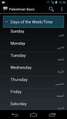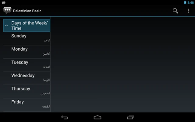Using this app, you can select an English phrase and view its translation and how to pronounce it in Palestinian.