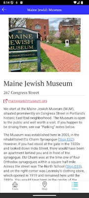 The first four trails (East End & Munjoy Hill, Middle & Fore Street Businesses,, Downtown, and Woodfords, Deering & Beyond) are located in neighborhoods that are part of the history of Portland Jews as they moved from the inner city to the suburbs. The fifth trail, Jewish Cemeteries, covers the four Jewish cemeteries in Portland and South Portland.