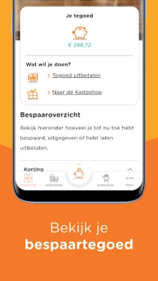 In het bespaartegoed vind je de besparing op je producten en andere leuke extra’s. Je kunt hier het gespaarde bedrag laten uitkeren op je bankrekening of besteden in onze online Kadoshop.
